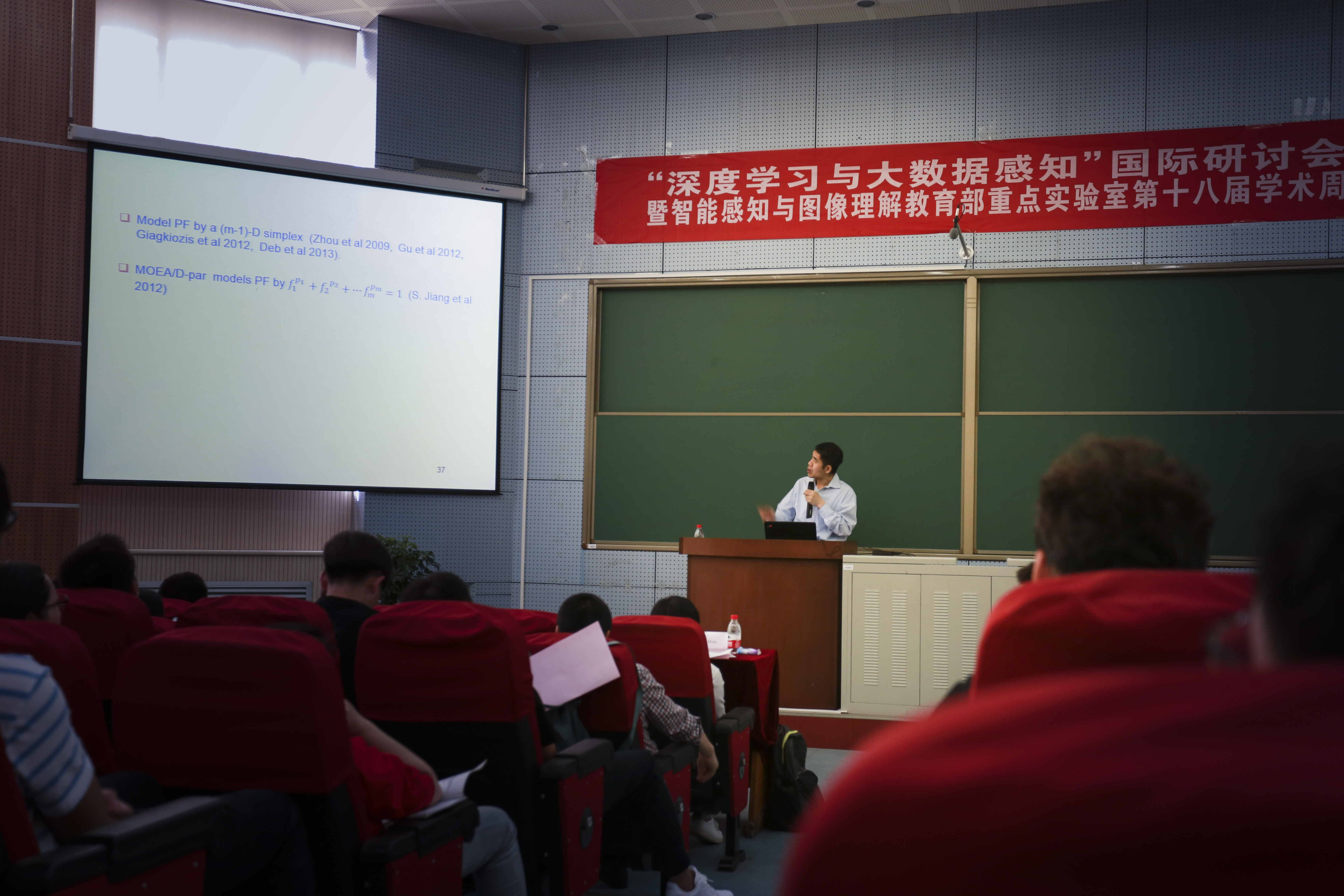 25日上午8:30分“深度学习与大数据感知”国际研讨会在pp电子游戏平台官网侯彪教授的主持下正式开幕,在25日到28日4天的学术活动中共有45场精彩的学术报告呈现,由领域顶尖专家学者、新锐企业领导者及刻苦钻研的学生共同展现了多样化的学术理念与实践应用,每场报告都座无虚席,走道也站满了学生,报告厅成为了一片浩荡的求知之海洋,每一朵浪花都饱含着新知与思考。45场报告涉及了“基于脑认知机理的条件证据理论及其深度学习方法”、“Multi-objective Bayesian Optimization”、“高分辨率图像智能处理技术”、“Scene Representation and Classification from Remote Sensing Images Based on Deep Learning”、“深度学习影像感知及解译”、“数据驱动的进化优化”、“面向机器人灵巧操作的认知传感与大数据处理”、“大数据、云计算、物联网-计算智能的研究前沿与应用”、“变分贝叶斯联合优化及应用”、“头脑风暴优化算法”、“Online Ensemble Learning of Class Imbalance Data”、“Current Hot Topics in Many-Objective Optimization”、“Online Growing Neural Gas for Anomaly Detection in Changing Surveillance Scenes”、“类脑计算的理念与实践”、“复杂场景中人群行为的研究及其应用”、“Remote Sensing and Media”、“协同过滤算法关键性技术及其稀疏性研究”、“概率分类学习”、“无人车场景计算与自主运动”、“大数据时代模式识别的机遇与挑战”、“语义通讯”、“What Can Evolutionary Algorithms Do on Complex Network”等各科研领域与课题。