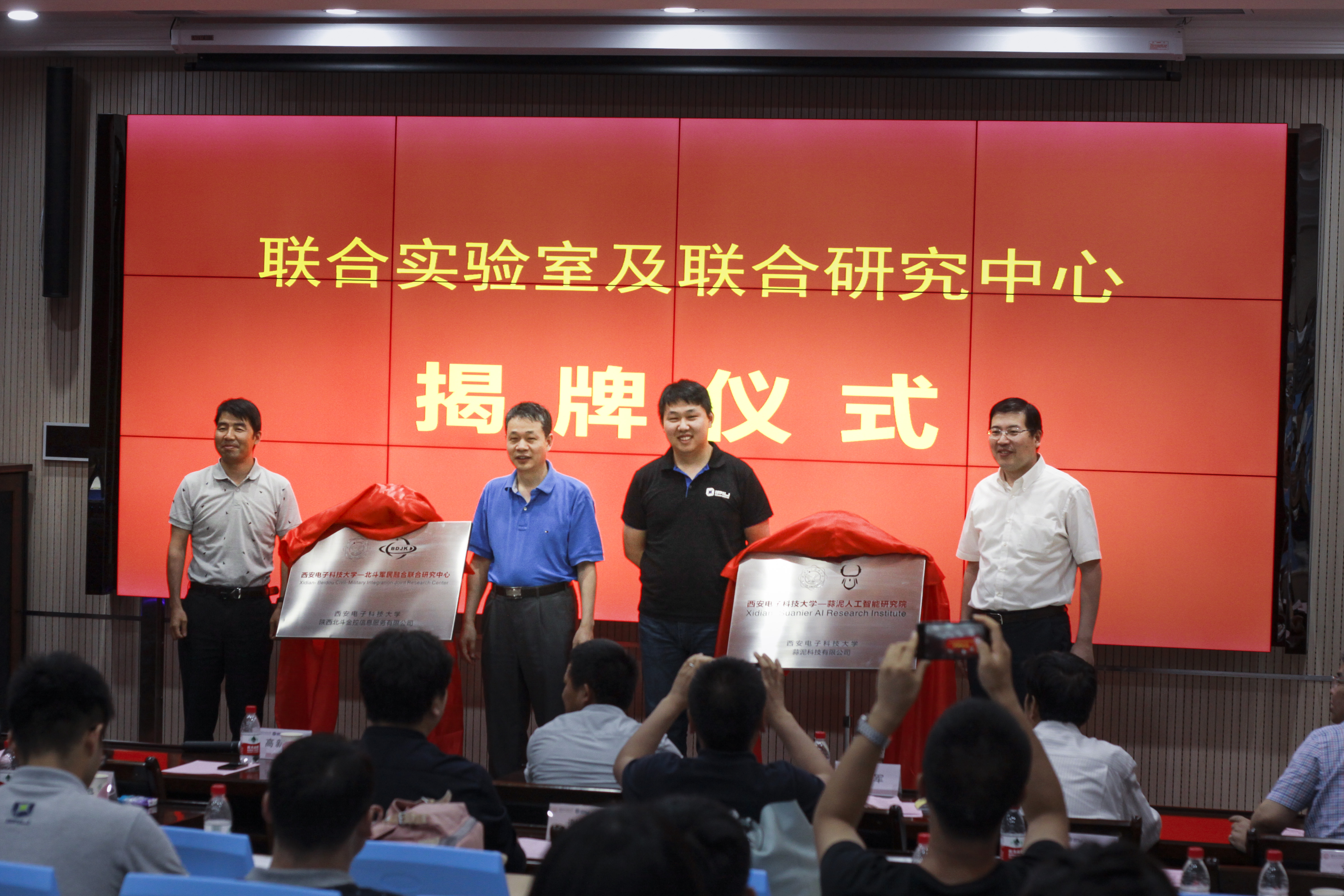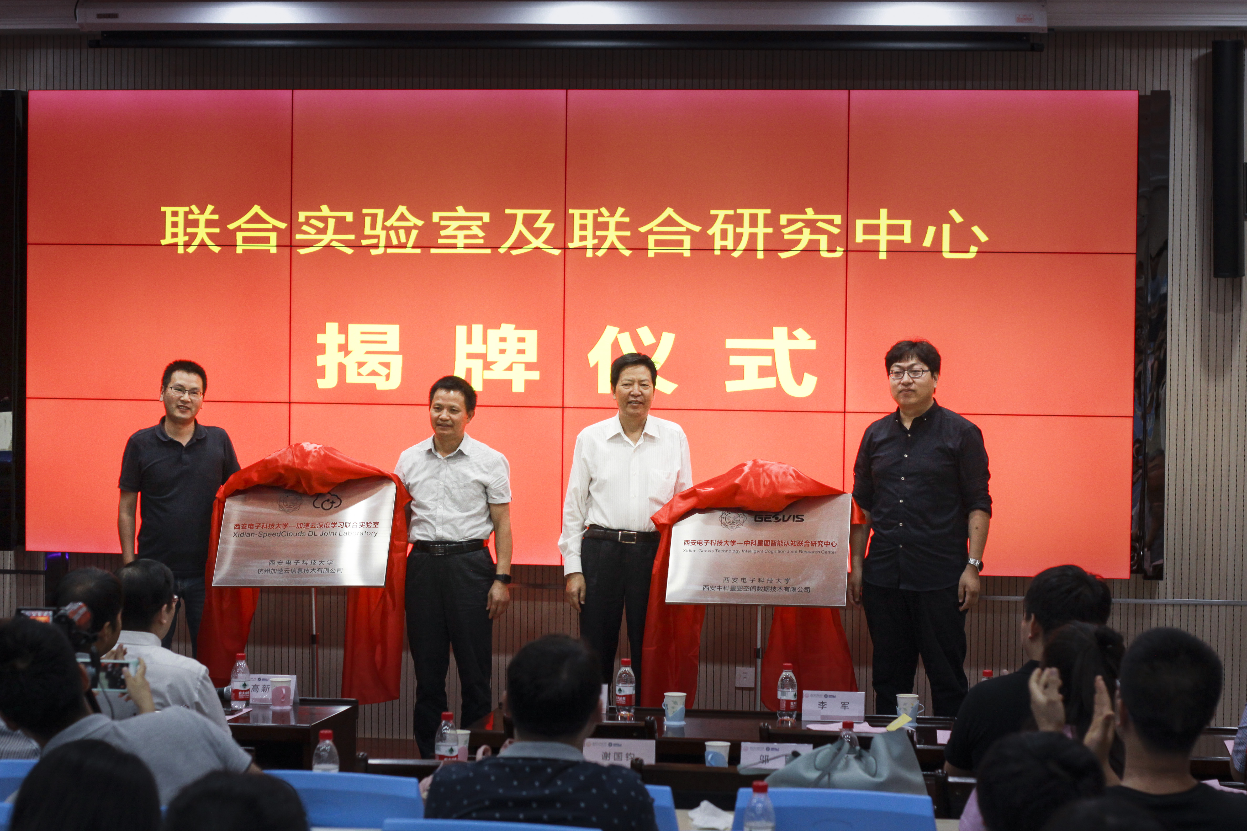 此外,pp电子游戏平台官网-北斗军民融合联合研究中心、pp电子游戏平台官网-蒜泥人工智能研究院、pp电子游戏平台官网-加速云深度学习联合实验室及pp电子游戏平台官网-中科星图智能认知联合研究中心也正式揭牌,陕西北斗金控信息服务公司董事长李卫斌、西安蒜泥科技有限公司创始人杨少毅、谢雯雯、杭州加速云信息技术有限公司CEO邬刚、西安中科星图空间数据技术有限公司总经理谢国钧出席了仪式并揭牌,电子工程学院院长廖桂生致辞祝贺。