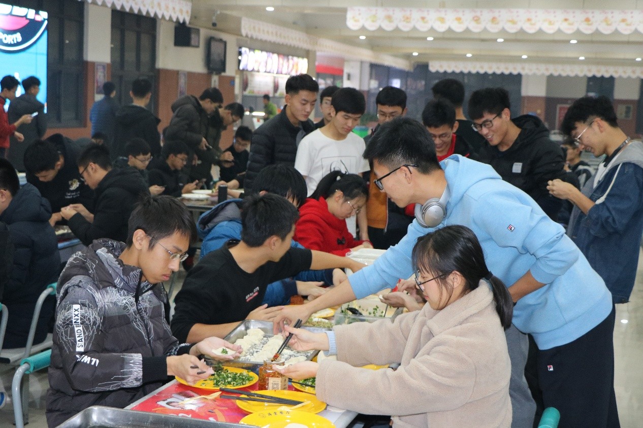 各班分到干净的盘子、馅料和饺子皮之后,同学们纷纷开始包起了饺子。有的是捏了花边的,有的是捏成麦穗饺,还有同学包出了小包子。各种形状的饺子,蕴含着五湖四海智能学子的家乡文化,饱含着大家满满的心意。