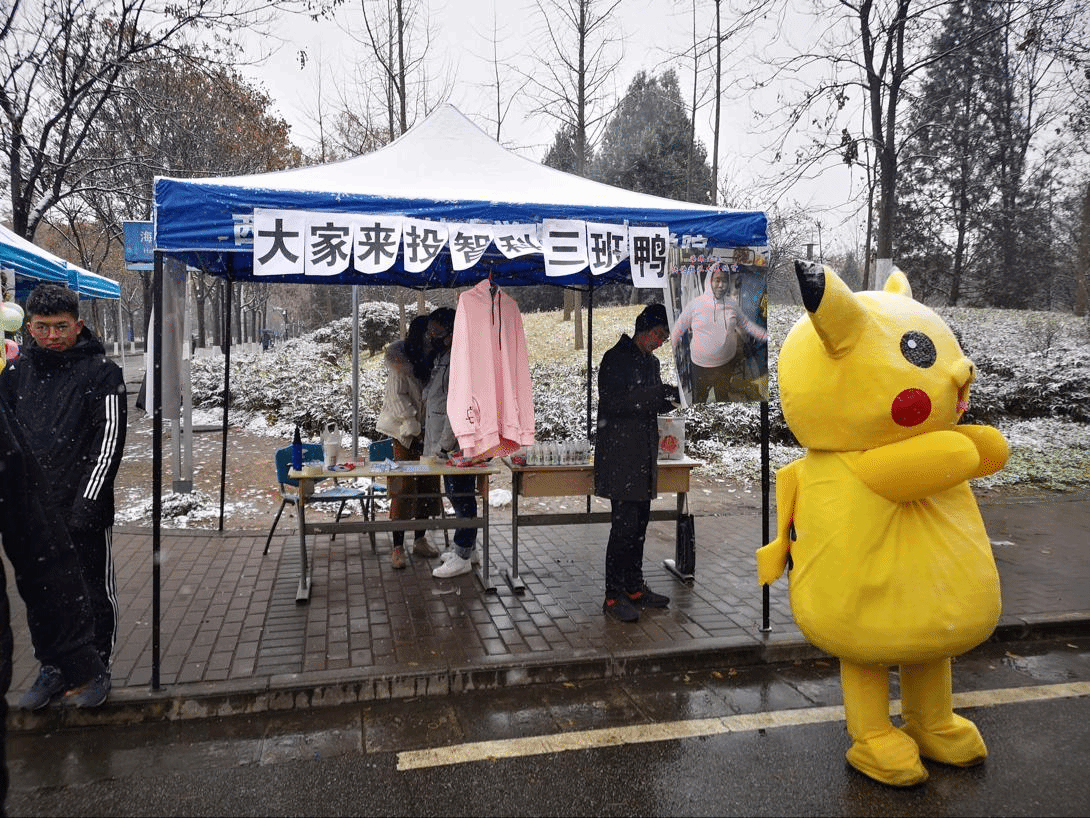 大雪中积极宣传的三班同学