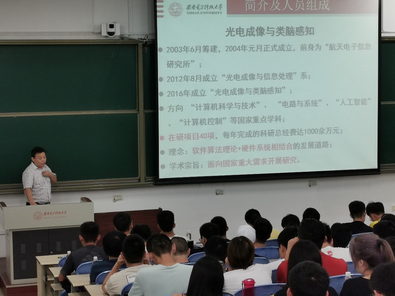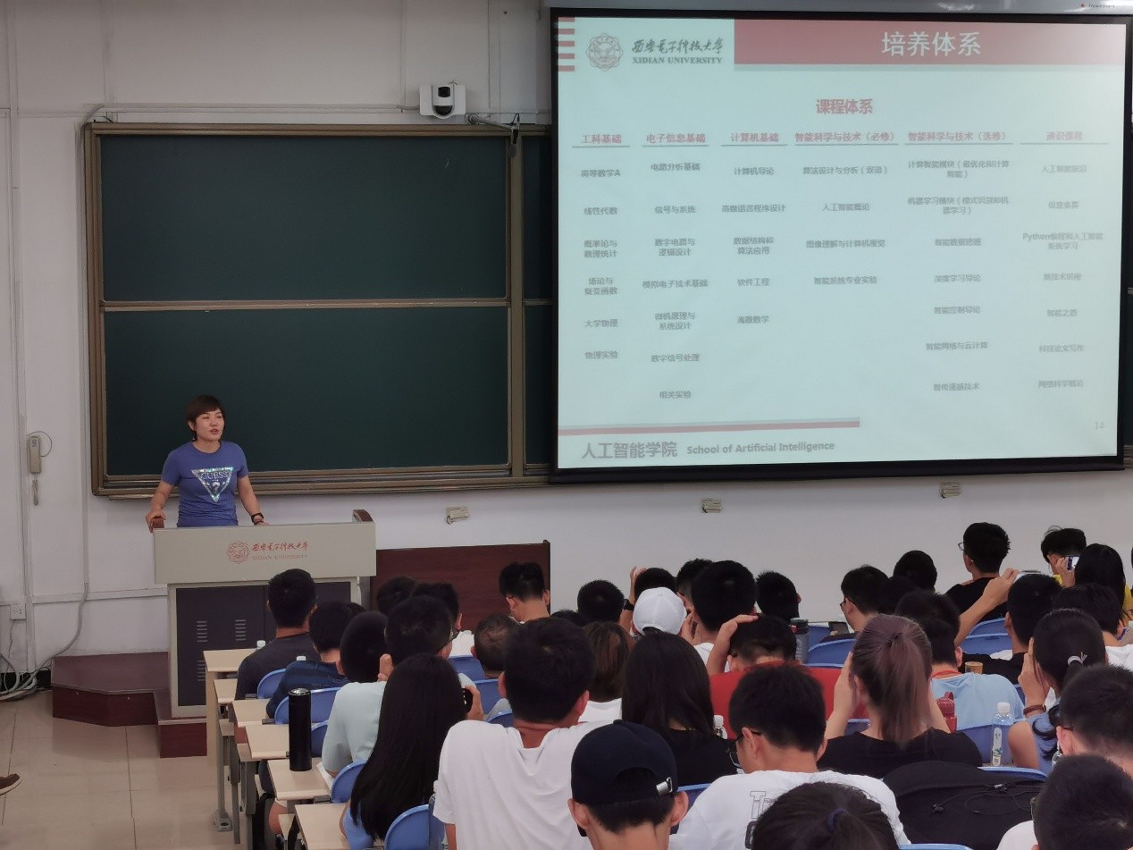 详细介绍了专业的培养方案和课程设置等大家迫切关注的问题。她从专业发展的背景出发,首先介绍了国内外智能专业的发展历程,然后阐述了pp电子官网在教学和科研实践中创新地确立“国际化+西电特色”的本硕博一体化培养体系。通过介绍,学生们进一步明晰了专业方向,明确了奋斗目标。