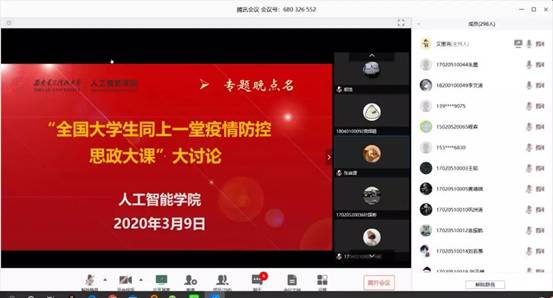 大课结束后,pp电子游戏平台官网辅导员杨坤和白璐芸,分年级组织召开了线上的主题晚点名—“全国大学生同上一堂疫情防控思政大课”大讨论,通过腾讯视频、哔哩哔哩等直播软件,与全体智能学子交流分享了听课感受。通过学习,同学们纷纷表示对疫情有了更生动全面的了解,对我国社会制度有了更深度的自信,对青年一代的使命担当有了更清晰的认识。