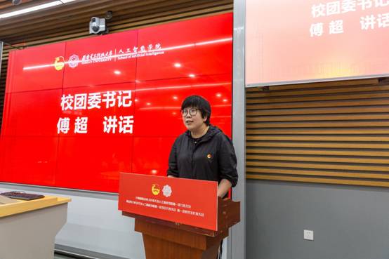 傅超代表学校团委向长期以来关心支持共青团工作的学院党政领导、广大师生表示衷心的感谢,向各位代表以及全院团员青年致以亲切的问候。她充分肯定了学院近年来各级团组织取得的优异成绩,并对学院共青团工作提出希望:一是旗帜鲜明地提升引领力,共青团是党的助手和后备军,思想政治引领工作是共青团工作的重要领域,学院团委要把又红又专、全面发展的传统和共青团的职责使命结合起来,努力提升思想政治的引领水平;二是坚定不移地提升组织力,确保共青团牢牢实实地扎根在青年之中,做好新时代党的青年群众工作的坚实保障;三是常抓不懈提升服务力,围绕立德树人的根本任务,服务青年学生综合素质的全面提升。她强调,学院共青团要继承优良传统、勇于开拓创新,始终发挥好引领作用,并结合时代背景和学院特色,帮助青年学生在各个领域有所建树。