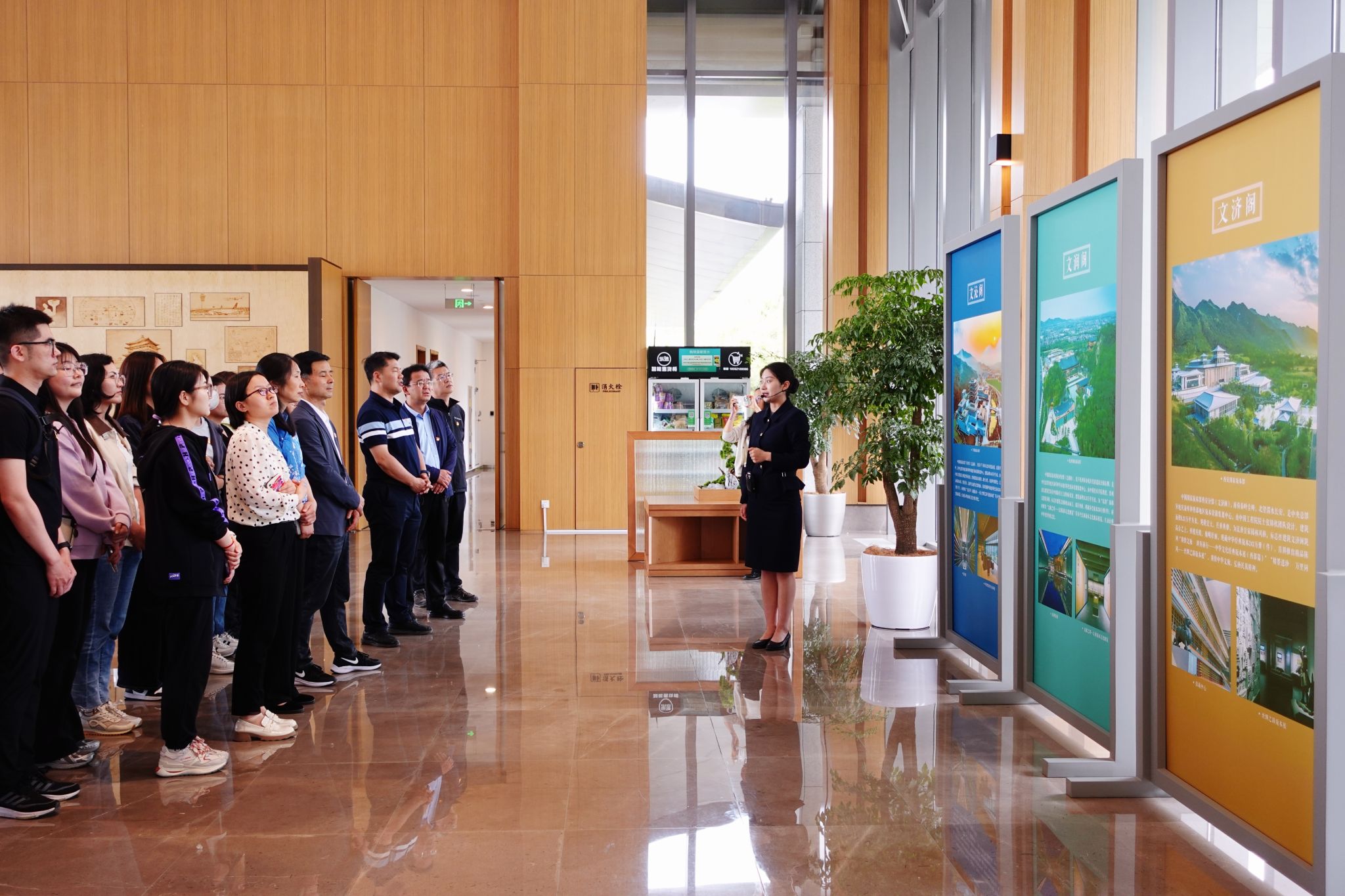 活动伊始,师生党员齐聚国家版本馆读者服务中心,跟随讲解员了解国家版本馆的建设背景、西安分馆(文济阁)的展览特色及其在推广与保护中华优秀文化方面的重要作用。西安国家版本馆以“立足西部、放眼全国、面向海外”为建设目标,是集保藏、展示、研究和交流等功能于一体的国家重大文化工程,体现了我国深厚的文化底蕴和历史传承。这进一步激发了党员同志们对文化传承工作的敬畏与责任感。