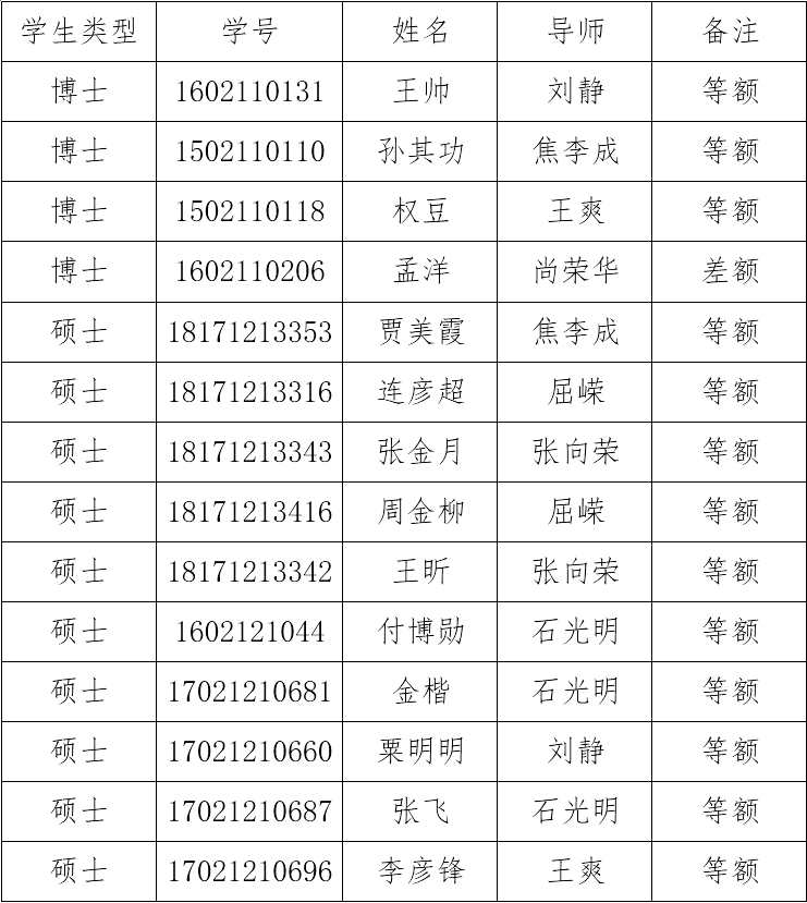 经学生申请,导师推荐,资格审核,学院组织答辩和集中评审,现将pp电子游戏平台官网2019年度研究生国家奖学金拟获奖学生名单予以公示。