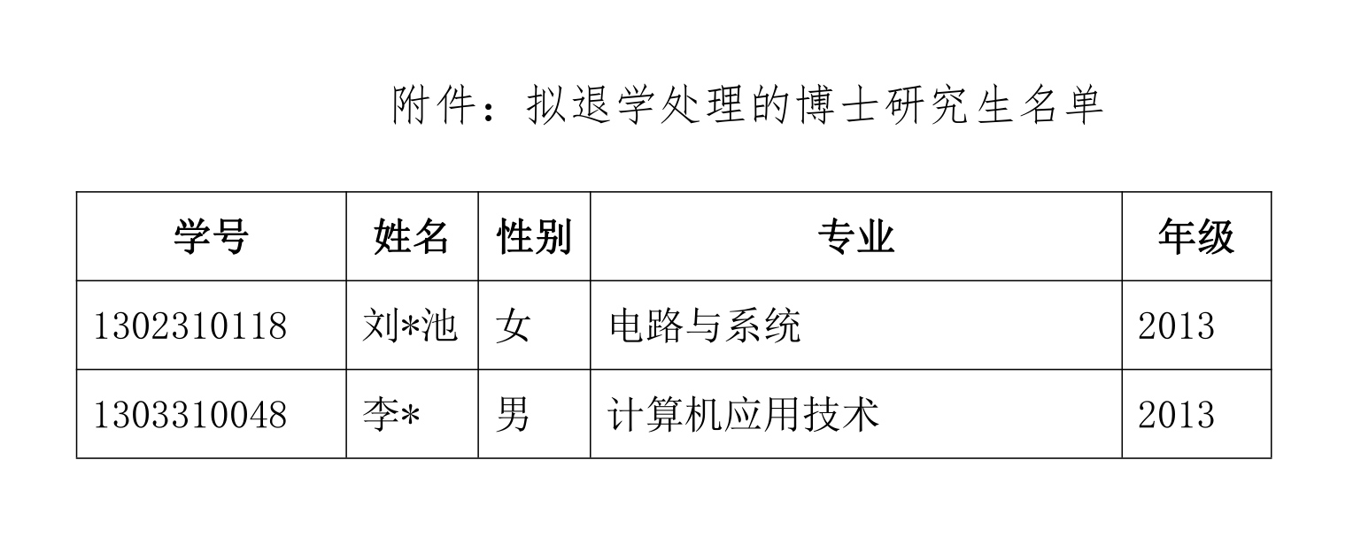 根据教育部《普通高等学校学生管理规定》第三十条和《pp电子游戏平台官网研究生学籍管理实施细则》第二十六条有关规定,学校拟对超过最长学习年限的博士研究生作退学处理,现将名单(见附件)予以公告,公告期为2021年6月8日-2021年6月22日。