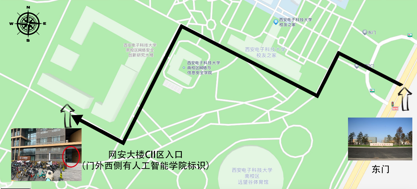 pp电子官网将于3月30日进行2024年研究生招生考试综合面试,学院位于网安大楼南侧,入口处有学院标志牌,从学校东门进入后到达学院路线图如下: