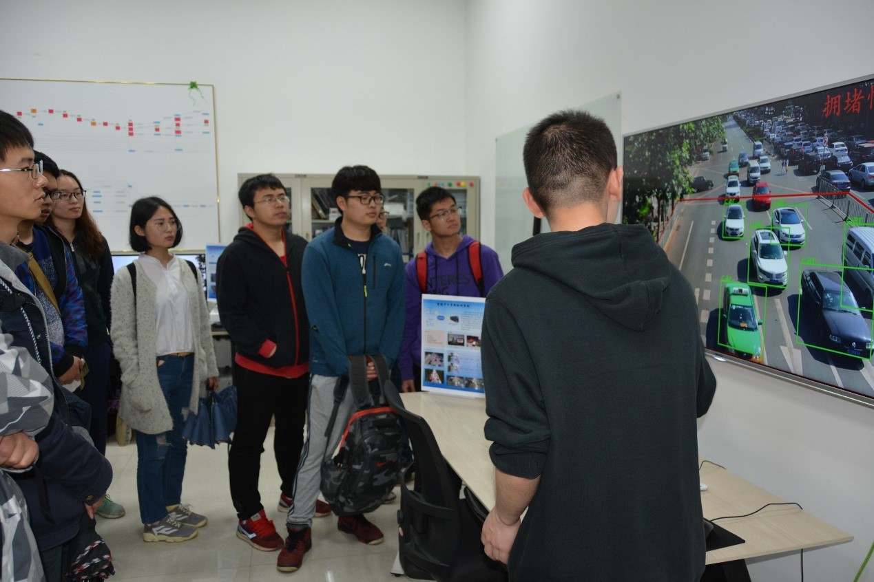 来访学生分为7个小组先后参观了视频追踪与识别实验室、光电成像与类脑感知实验室、西电-加速云联合实验室、影像大数据类脑解译实验室和智能应用创新实验室。高端的科技前沿设备,专注的科研学术氛围,给本科生们留下了深刻的印象。在参观过程中,实验室的研究生为前来参观的学弟学妹们答疑解惑,与他们热烈探讨未来人工智能发展的方向与相关领域的应用。来访本科生们被各研究团队在人工智能各个领域所取得的成就深深震撼,深刻认识到创新在理论学习和生产实际中的重要性。