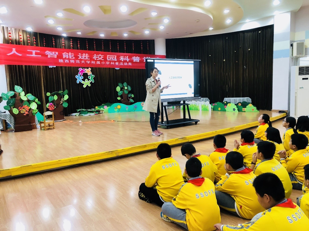 2018年9月18日下午,pp电子官网白静副教授在陕师大附小长安校区,为小学生进行人工智能进校园科普讲座,做题为“人工智能的故事”的报告;