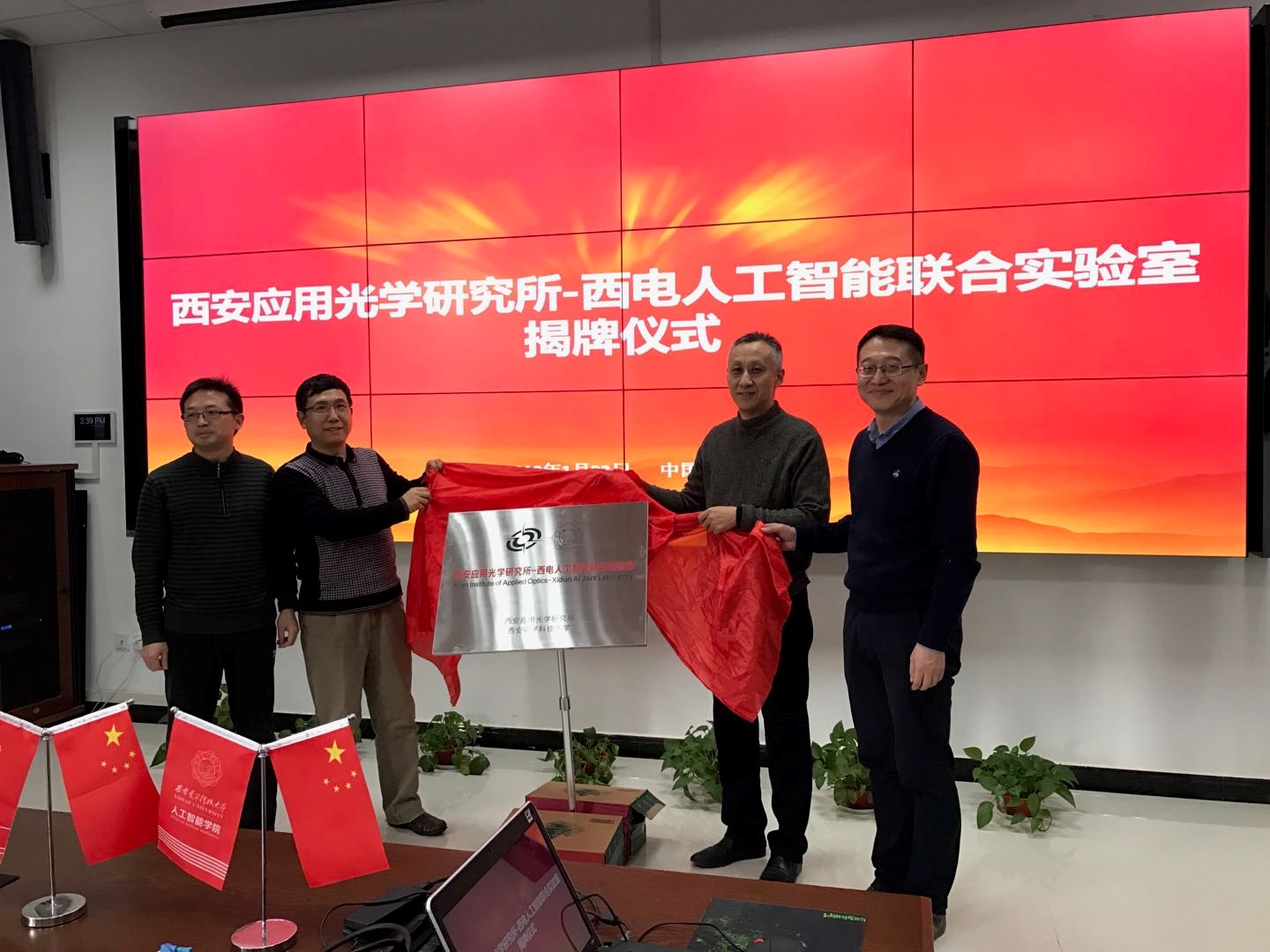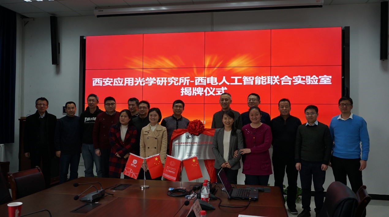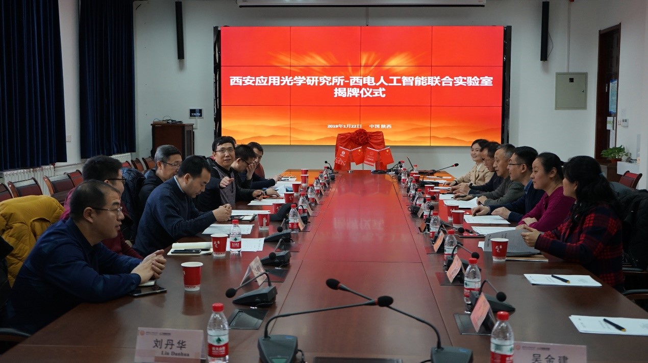 1月22日,pp电子游戏平台官网-西安应用光学研究所人工智能联合实验室揭牌仪式在pp电子游戏平台官网举行。光电集团总工程师崔东旭、西安应用光学研究所副所长陈方斌及相关部门负责人,西电校长助理王泉,科研院、研究生院、pp电子游戏平台官网负责人出席并为联合实验室成立揭牌。