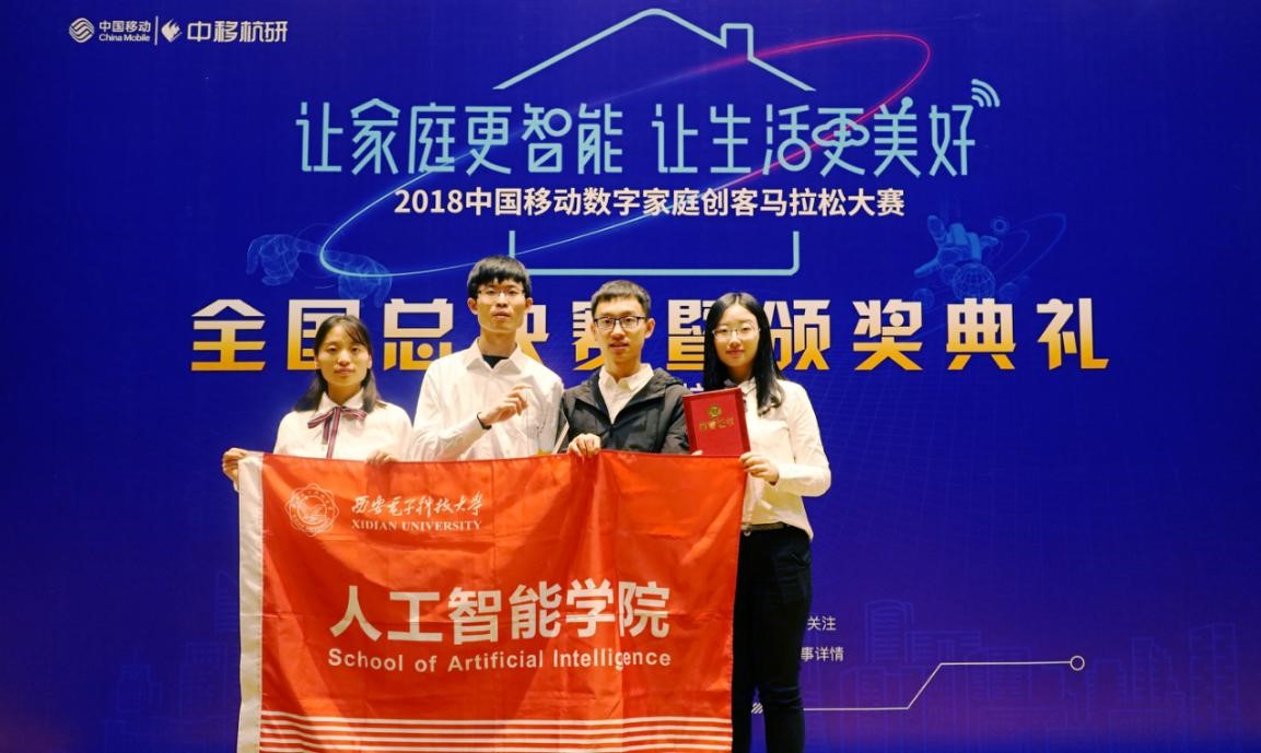 (图为2018年11月团队代表在中国移动数字家庭创客马拉松颁奖典礼)