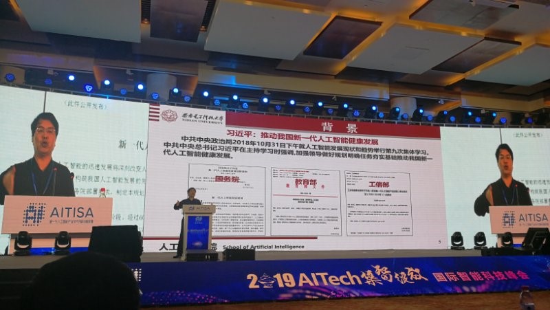 2019年4月18日,计算机科学与技术学部主任、pp电子游戏平台官网焦李成教授受邀参加了在青岛举办的AITech(2019国际智能科技峰会)集智绽放主论坛,并做了题为“人工智能本硕博创新人才一体化培养的探索与实践”特邀报告。