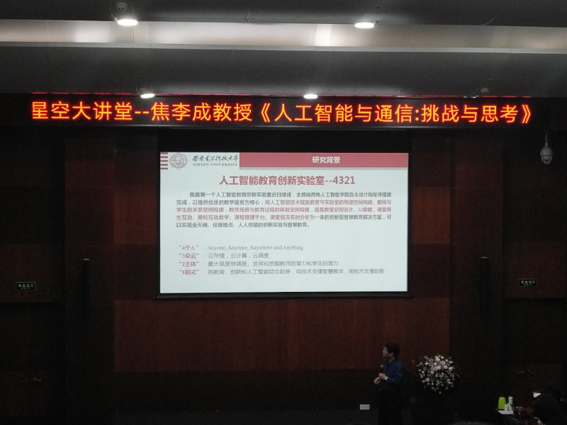 2019年5月16日,计算机科学与技术学部主任、pp电子游戏平台官网焦李成教授受邀参加了华为西研所的“星空大讲堂”,并做了题为“人工智能与通信:挑战与思考”特邀报告。