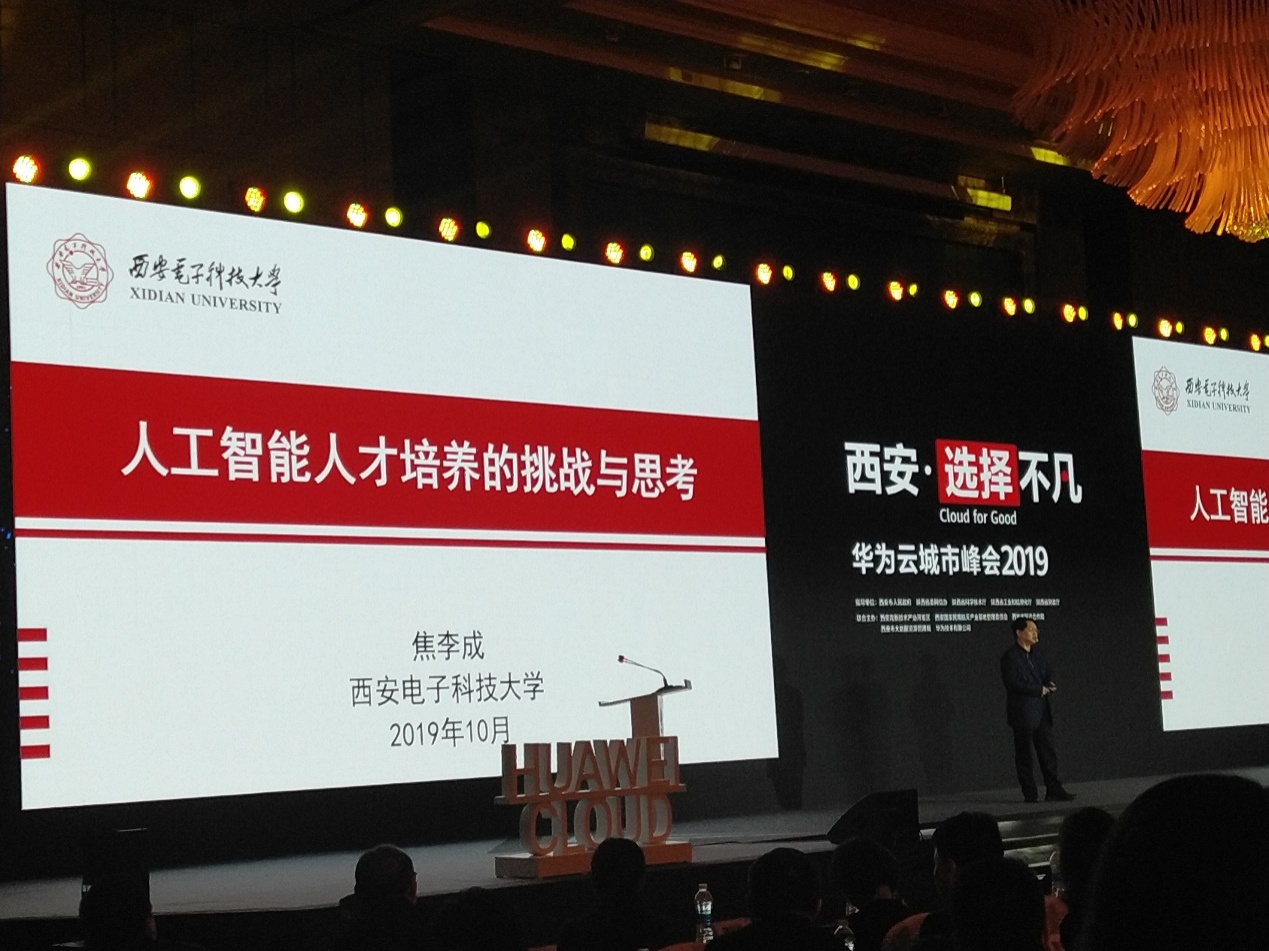 2019年10月17日,计算机科学与技术学部主任、pp电子游戏平台官网焦李成教授受邀参加了“西安·选择不凡”——华为云城市峰2019,并做了题为“人工智能人才培养的挑战与思考”的特邀报告。