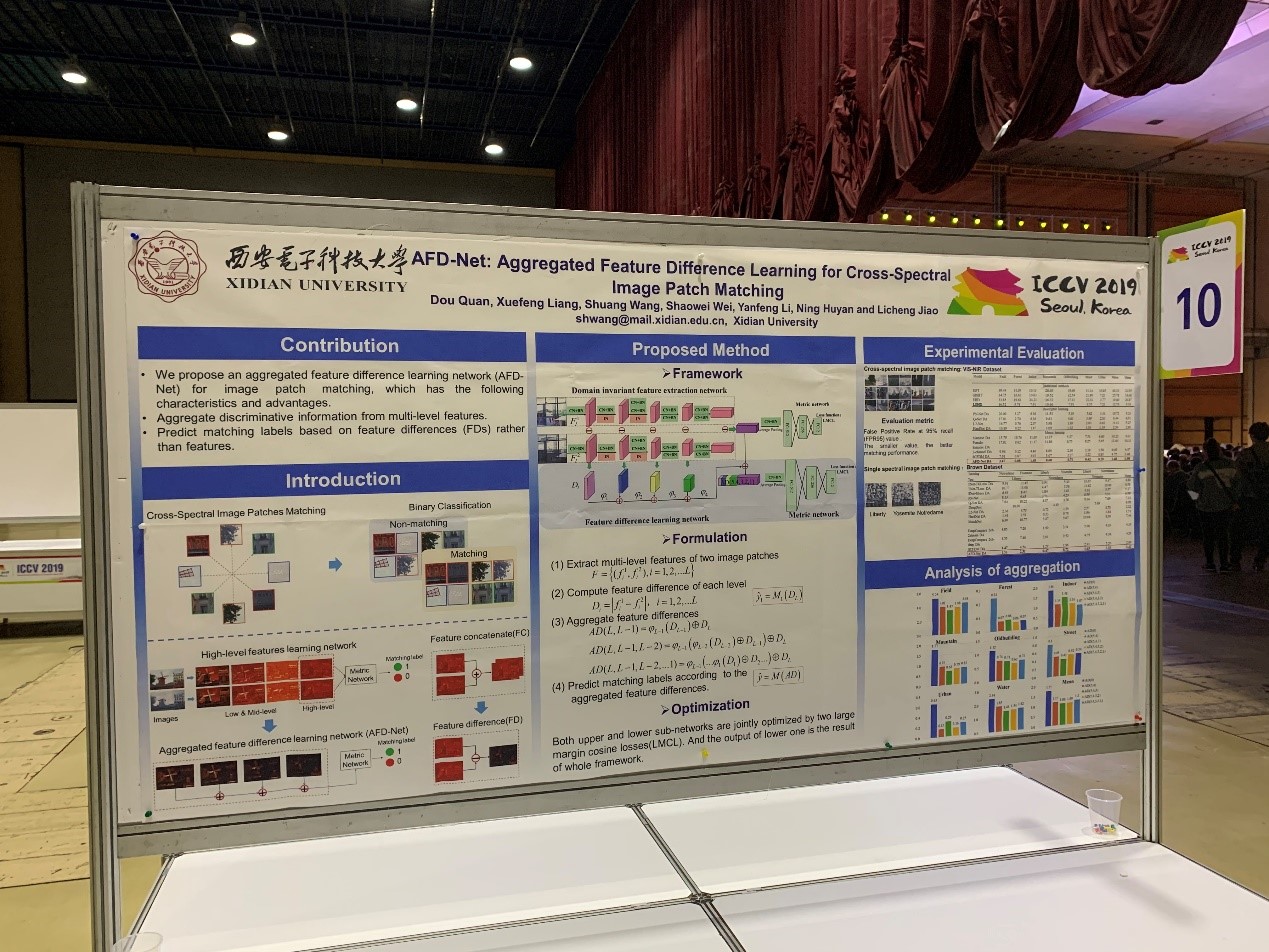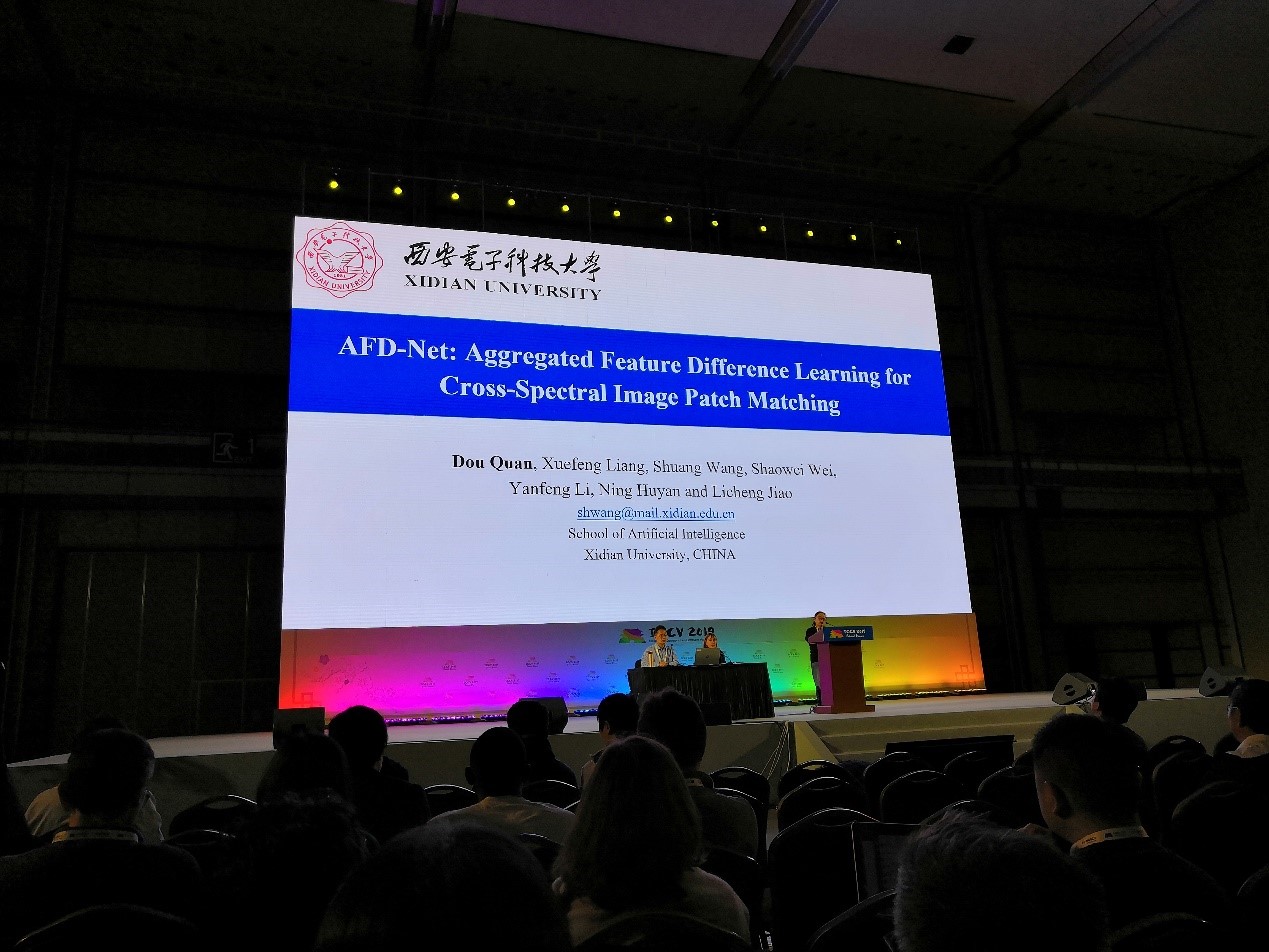 由pp电子游戏平台官网梁雪峰教授、王爽教授和焦李成教授指导,博士生权豆等完成的论文《AFD-Net: Aggregated Feature Difference Learning for Cross-Spectral Image Patch Matching》以及硕士生李彦峰等完成的论文《Better and Faster: Exponential Loss for Image Patch Matching》被ICCV 2019录用,其中“AFD-Net” 为口头报告(Oral)论文,而ICCV 2019的Oral录用比例仅为4.62%。