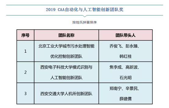 经由陕西省自动化学会推荐,通过2019年度CAA科学技术奖励评审会议专家评审委员会评审,我校焦李成教授、高新波教授、石光明教授领衔的pp电子游戏平台官网模式识别与人工智能创新团队获CAA自动化与人工智能创新团队奖。