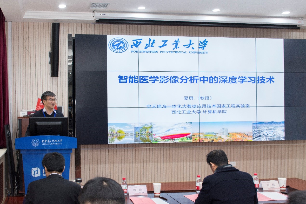 智能感知与图像理解教育部重点实验室副主任侯彪教授主持论坛开幕式,陕西电子工业研究院总工程师李卫斌、学校科研院副院长张毅、校友事务与联络发展处副处长张卫东、pp电子游戏平台官网党委书记魏峻等领导及嘉宾出席了开幕式,pp电子游戏平台官网人工智能行业校友会在开幕式上成立,智能遥感大数据解译研究中心、智能医学影像大数据交叉前沿研究中心、智能态势感知研究中心同日揭牌。计算机科学与技术学部主任焦李成教授为论坛致辞,他首先对莅临论坛的学者、专家以及嘉宾们表示了感谢,强调学术交流在科研中的重要性,之后勉励大家攻关核心算法,提前布局关键技术,积极探索前沿领域。学术报告是论坛最重要的环节,在论坛分享前沿探索成果的学者专家有:西北工业大学王琦教授、西北工业大学夏勇教授、pp电子游戏平台官网陈渤教授、伦敦玛丽女王大学助理教授(Queen Mary University of London)郝鹏威、国防科技大学王锐研究员、pp电子游戏平台官网张向荣教授、北京一流科技有限公司创始人袁进辉博士、pp电子游戏平台官网梁雪峰教授、陕西师范大学程适博士、长光卫星技术有限公司韩睿工程师、蒜泥科技联合创始人褚智威CTO、南京信息工程大学刘光灿教授、西安交通大学兰旭光教授、西北工业大学聂飞平教授、中科院自动化所刘康研究员、pp电子游戏平台官网吴金建教授、特温特大学(University of Twente)助理教授常玲。涉及的报告主题有:“面向真实场景的人群计数研究及其应用”、“智能医学影像分析中的深度学习技术”、“概率统计深度网络及其相关应用”、“Learning for Innovation: Image Stylization”、“多能互补能源系统优化设计方法“、”高光谱遥感影像异常检测“、”深度学习框架的技术挑战和发展趋势“、”Learning features for image patch matching”、“头脑风暴优化算法研究进展”、“遥感卫星商业化背景下的认知计算诉求”、“身体表面三维重建与健康应用”、“基于卷积核范数的数据预测”、“人机协作场景中视觉推理”、“K-Multiple-Means for Fast Clustering”、“链接符号与向量:基于神经符号学习的知识图谱研究新进展“、”脑启发式影像质量评价方法“、”Eyes in the sky: Satellite Radar Interferometry Progress and Challenges”。