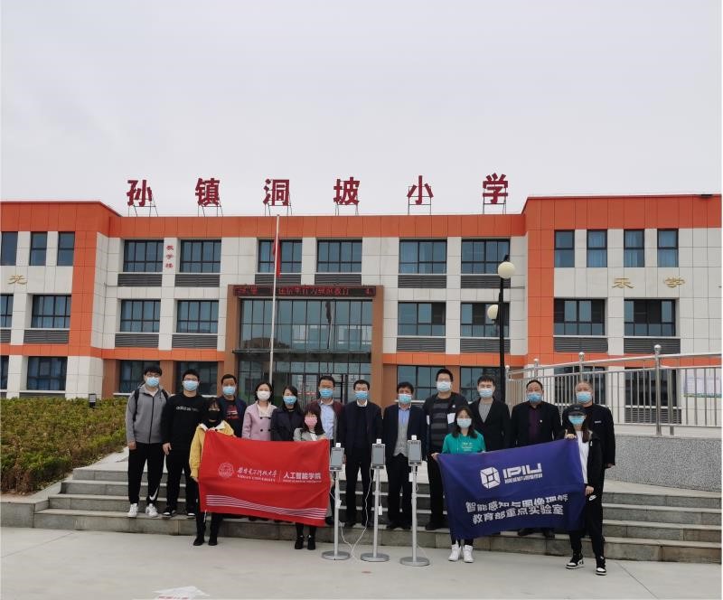 4月,蒲城县孙镇洞坡小学收到了来自pp电子游戏平台官网、智能感知与图像理解教育部重点实验室捐赠的“校园智能管理系统”,包括3台智能测温设备、500余张定制化师生校园卡和校园智能管理平台,该小学的学生安全复学得到了重要保障。在疫情防控关键阶段、学生全面复学返校之际,西电人工智能与模式识别创新团队结合自身专业优势,迅速组织,在焦李成教授、侯彪教授以及吴建设教授的支持和指导下,由孙其功博士带领吴兆阳、杨育婷、高剑、赵嘉璇、邵奕霖、胡冰楠等研究生组成研发团队完成了“校园智能管理系统”的紧急研发任务。