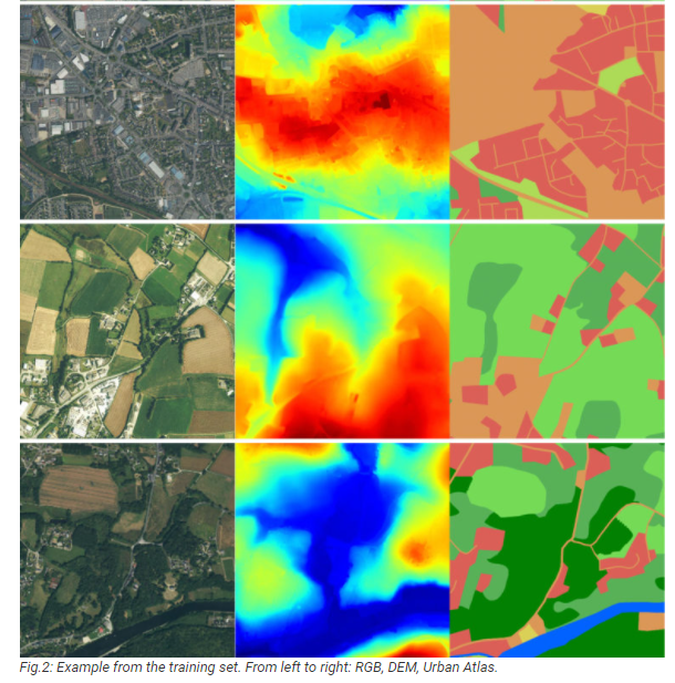 竞赛使用的数据集为MiniFrance-DFC22 (MF-DFC22),它是对MiniFrance数据集进行了扩展与修改并用于半监督语义分割的数据集。其中多模态MF-DFC22数据中包含了法国地区19个大城市及其周围环境相对应的航空影像、高程模型和土地利用/土地覆被地图。它包括城市和乡村场景:住宅区,工业和商业区,还包括田野,森林,海岸和低山。