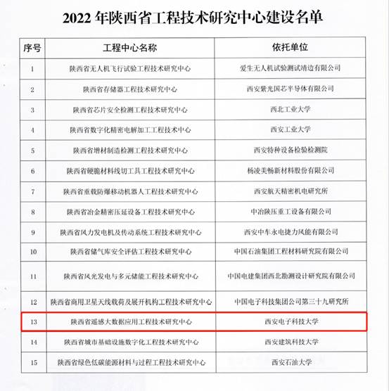 日前,陕西省科学技术厅公布了“2022年陕西省工程技术研究中心建设名单”,由pp电子游戏平台官网侯彪教授牵头申报的“陕西省遥感大数据应用工程技术研究中心”获批立项建设。这是西电继2009年获批首个省工程技术研究中心以来取得的又一突破。