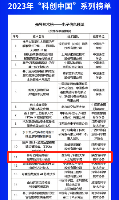 7月2日,中国科协召开第二十六届年会并发布2023年“科创中国”系列榜单,由我校pp电子游戏平台官网欧洲科学院院士焦李成团队的侯彪教授、任仲乐准聘副教授和李卫斌教授研发的成果“秦岭·西电遥感脑:遥感预训练大模型”成功入选“先导技术榜-电子信息领域”类项目。