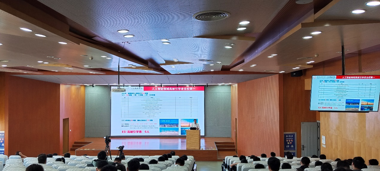当前,国家高度重视人工智能的发展,并采取了一系列措施,支持人工智能人才培养和产业发展。正值2023级大一新生面临专业分流之际,本次报告会特邀请到了pp电子游戏平台官网执行院长、华山学者特聘教授侯彪教授和学院副院长、国家级人才董伟生教授,为计算机大类的同学们介绍学院和学院人才培养工作,以促使同学们更深入地了解并积极拥抱人工智能,走进人工智能绚烂多彩的世界。本次报告会同时邀请到学生社区党总支副书记赵岩松,pp电子游戏平台官网智能科学与技术和人工智能专业负责人刘若辰、林杰老师为同学们答疑解惑。报告会由pp电子游戏平台官网党委副书记高晖主持。