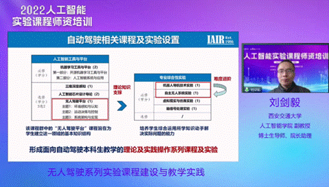 西安交通大学pp电子游戏平台官网刘剑毅副教授做了题为“无人驾驶系列实验课程建设与教学实践”的报告。作为涉及人工智能诸多技术的综合案例,无人驾驶落地本科生教学具有重要意义。课程团队在无人驾驶平台建设基础上,开设了《机器人导航技术实验》《自主无人系统实验》等,形成面向自动驾驶本科生教学的理论及实践操作系列课程。围绕人工智能教学资源建设目标,分别以“教材、教具、教案、教场”为抓手,丰富资源建设内涵,通过实验案例和考核评价机制的优化设计,保证了人工智能本科专业人才的培养效果。