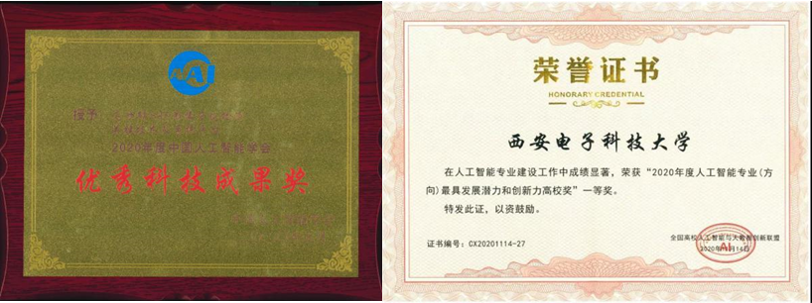 西电荣获“2020年度人工智能专业(方向)最具发展潜力和创新力高校奖”一等奖。