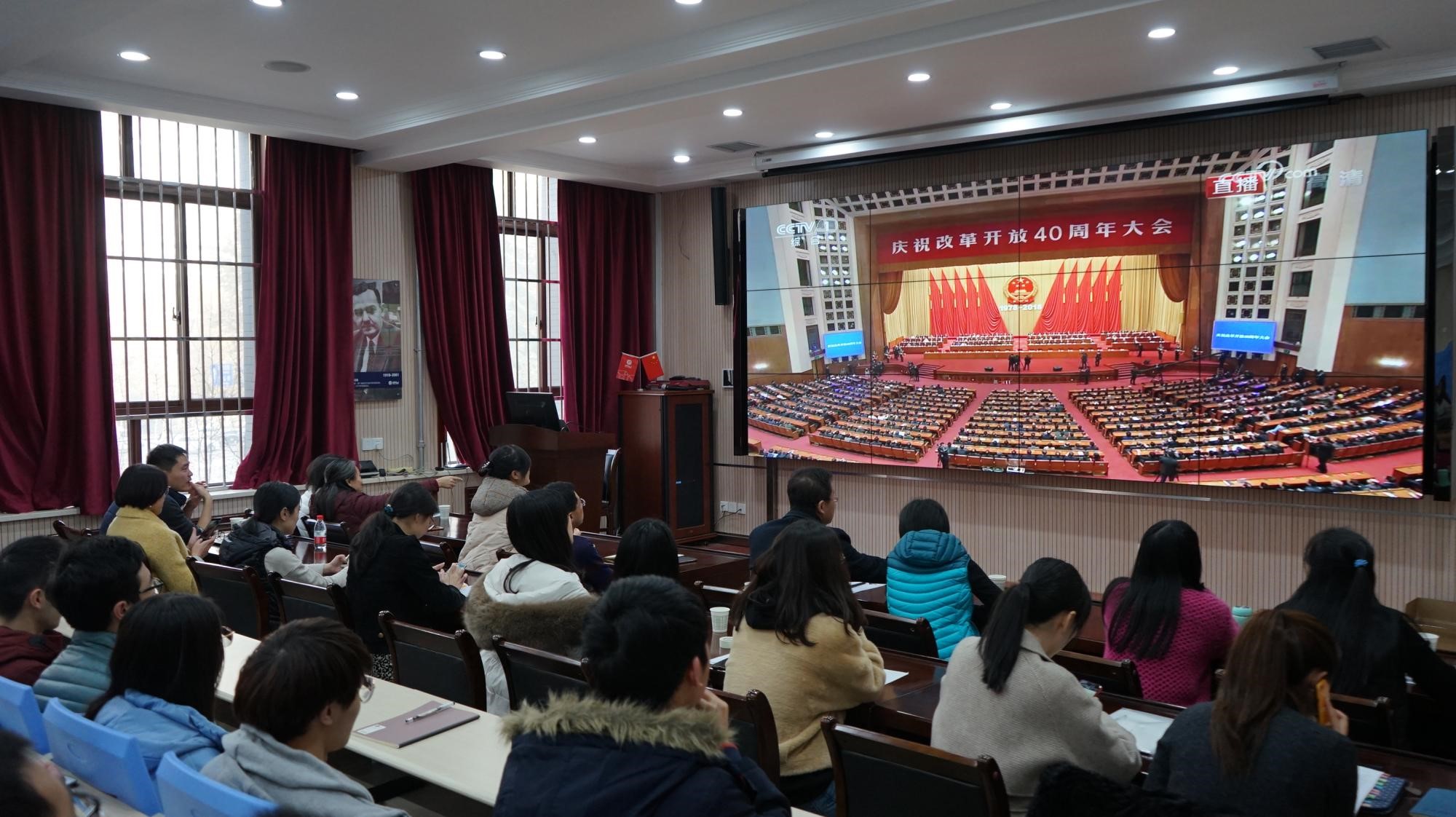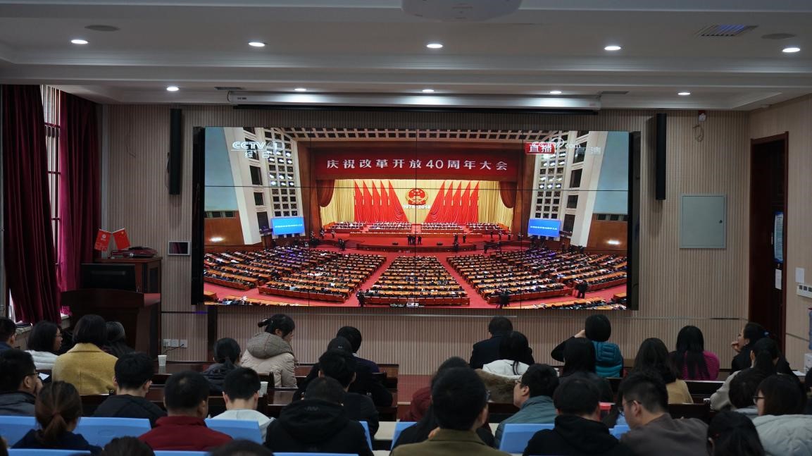西电新闻网讯(通讯员 赵蕾)庆祝改革开放40周年大会18日上午10时在人民大会堂举行,中共中央总书记、国家主席、中央军委主席习近平出席大会并发表重要讲话。pp电子游戏平台官网组织党员干部和广大师生观看庆祝改革开放40周年大会,观看人员包括党委书记魏峻,智能感知与图像理解教育部重点实验室副主任侯彪教授,党委副书记高晖,副院长马晶晶,全体老师和各学生党支部代表。