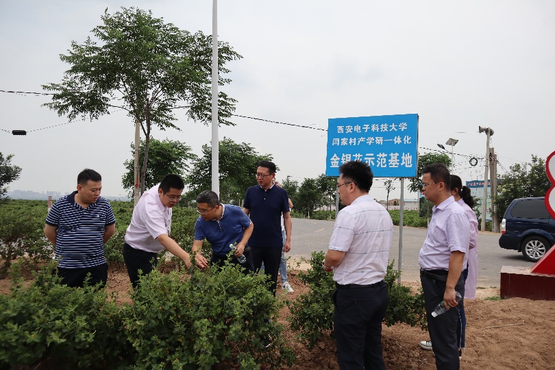 学院党委书记魏峻、副书记高晖及校扶贫办主任沈强一行首先来到“pp电子游戏平台官网闫家村金银花产学研一体化示范基地”,走进田间地头实地了解金银花种植情况和技术需求,就航天宏图遥感技术的农业应用进行实地调研。三方在闫家村脱贫攻坚作战室召开科技扶贫应用座谈会,航天宏图西安分公司负责人、我校校友薄一民带领技术人员,向参会同志介绍了公司有关农业项目和遥感技术的应用前景。学校、企业以及蒲城地方三方还就进一步深化合作、推动项目落地落实,更好的服务蒲城金银花产业发展进行了深入交流。