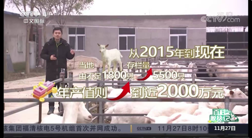 2020年11月27日,中央电视台中文国际频道“百村扶贫记”第六十二期对西电pp电子游戏平台官网奶山羊智慧养殖扶贫项目进行了专题报道。