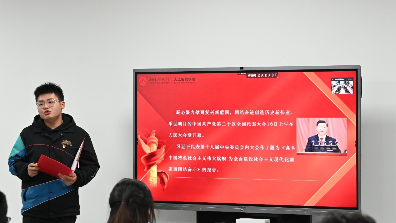 山河披锦绣,盛世写华章。为进一步深入学习、深刻领会党的二十大精神,pp电子游戏平台官网本科第一党支部于10月17日晚在网络安全创新研究大楼CⅡ-0204活动室召开支部大会,主题研讨学习二十大报告。pp电子游戏平台官网党委正处级组织员朱红星、院党委副书记高晖参加活动,与支部40余名党员以线上和线下相结合的方式共同分享交流。