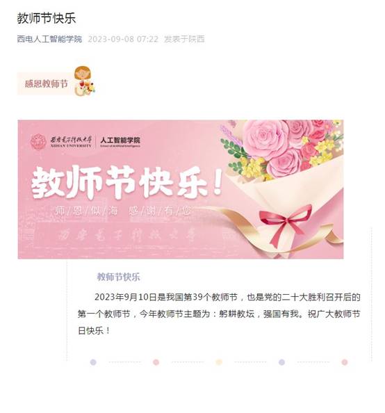 同时,在学院网站、公众号等网络媒体为全体教师送上节日祝福。