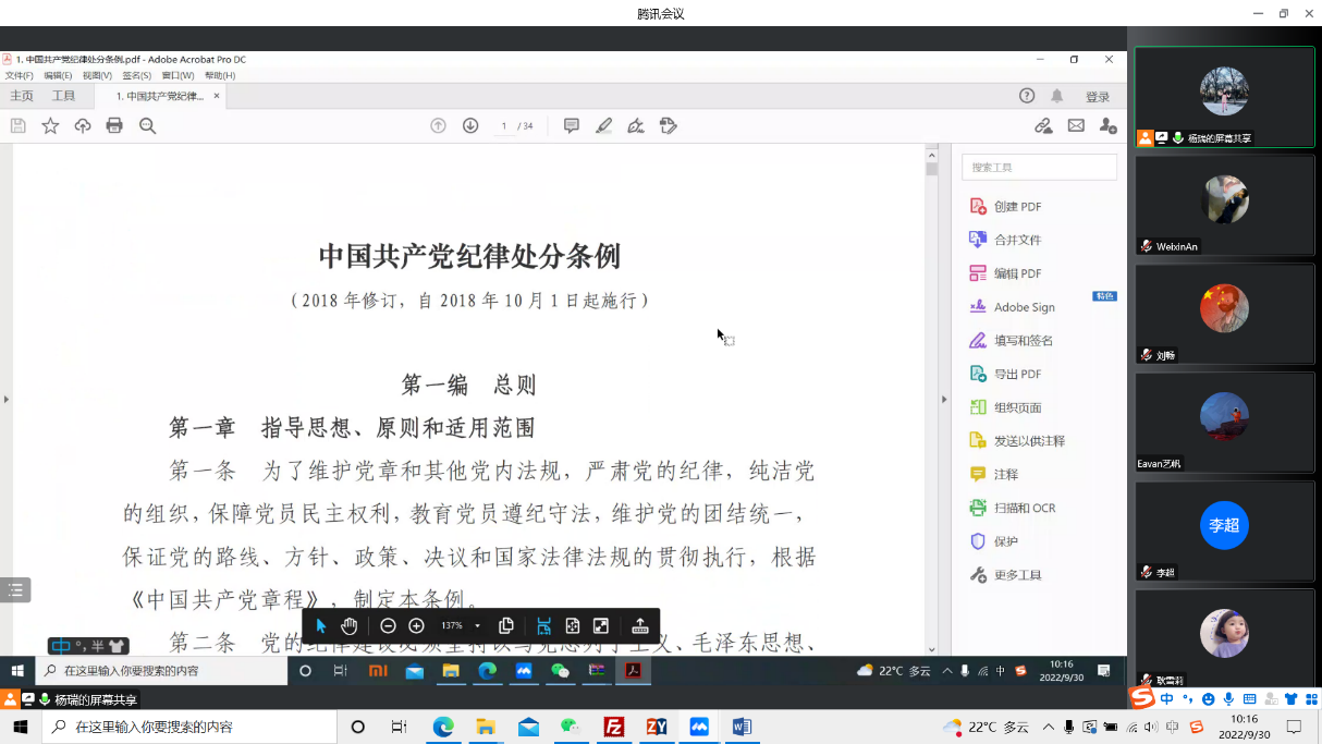 为抓好纪律教育学习的组织落实,博士第一党支部把纪律教育宣传月活动列入支部工作重要议事日程,采取了一系列措施确保教育活动落到实处。9月12日,支部召开支委会,党支部书记刘梦琨传达了《pp电子游戏平台官网党委关于在全院开展纪律教育宣传月活动的通知》文件精神。会议强调,要把纪律教育学习宣传月活动作为支部加强作风建设的重要抓手,深入开展党性教育、纪律教育、警示教育和廉洁文化教育,深化廉洁校园建设,为扎实落实好立德树人根本任务营造风清气正的校园环境。随后,支委会研究活动实施方案,细化量化活动时间、内容、方法、步骤等,为保证活动取得实效奠定了基础。